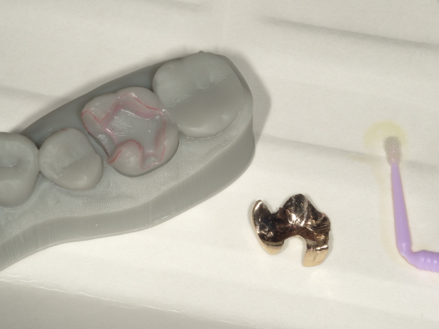 今回セットした修復物はPGAインレーのため、対合歯のゴールドとは色の出方が異なる